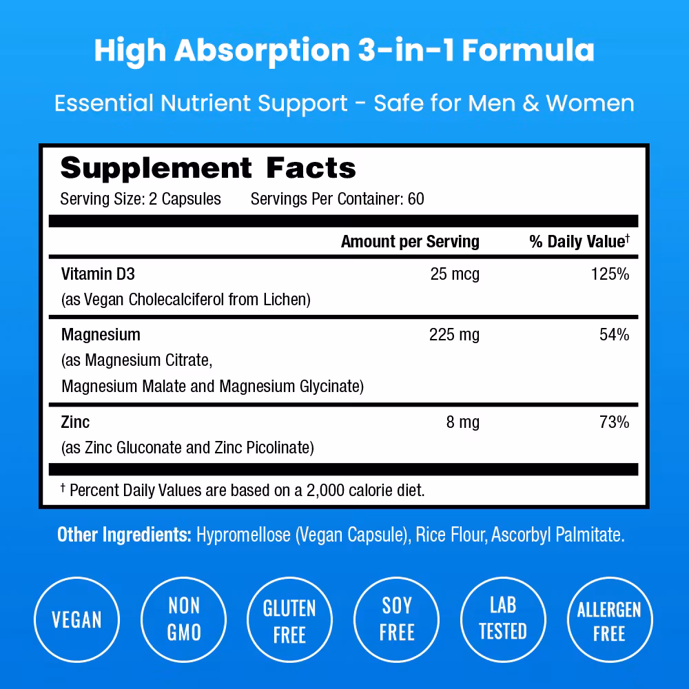 NutraChamps Magnesium, Sink & D3 – Komplett supplement for helser og velvære
